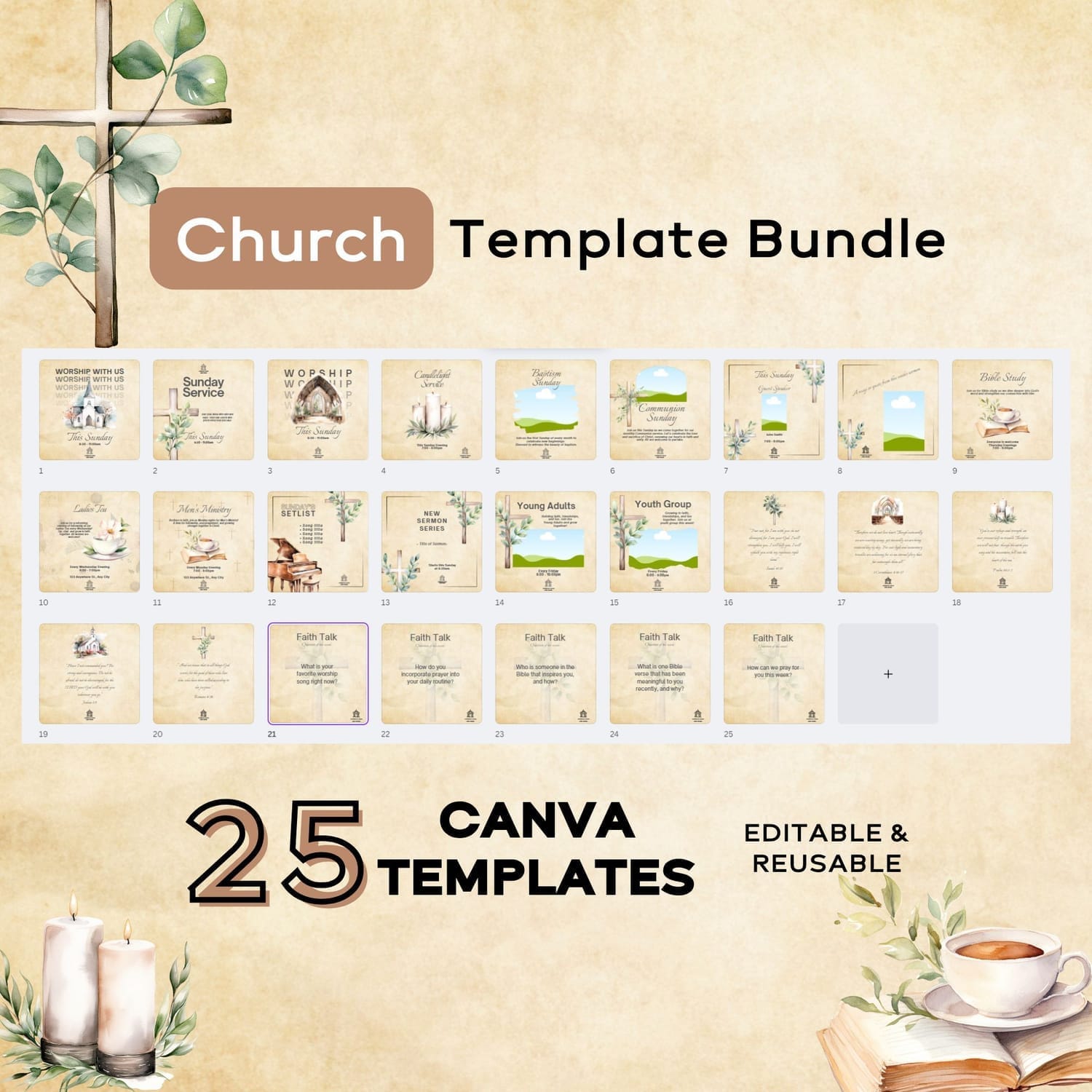 Faith-Focused: Designed with your mission in mind, these templates help you share the word of God consistently and beautifully.