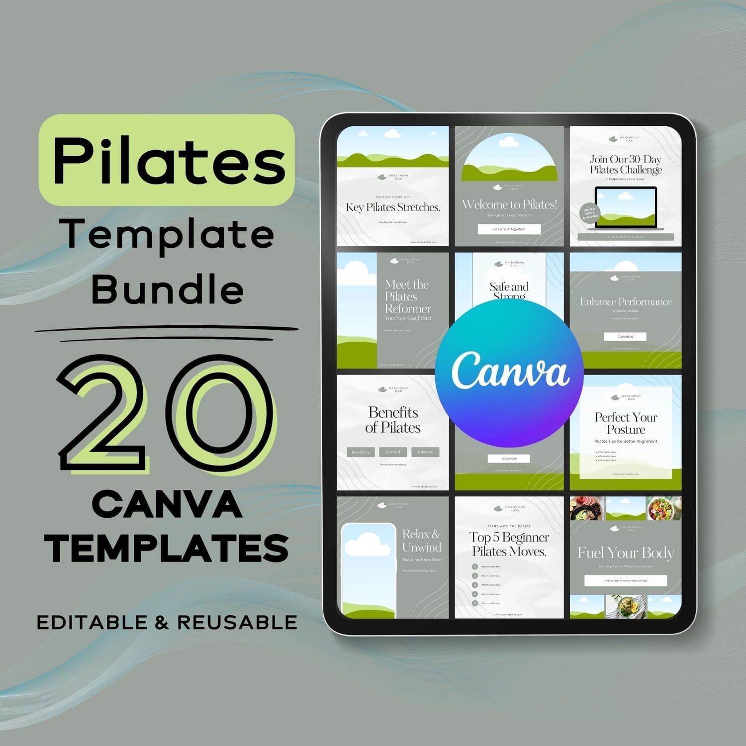 For a limited time, get the 20 Pilates-Themed Canva Templates for just $4! It’s a small investment for a big boost to your marketing efforts.